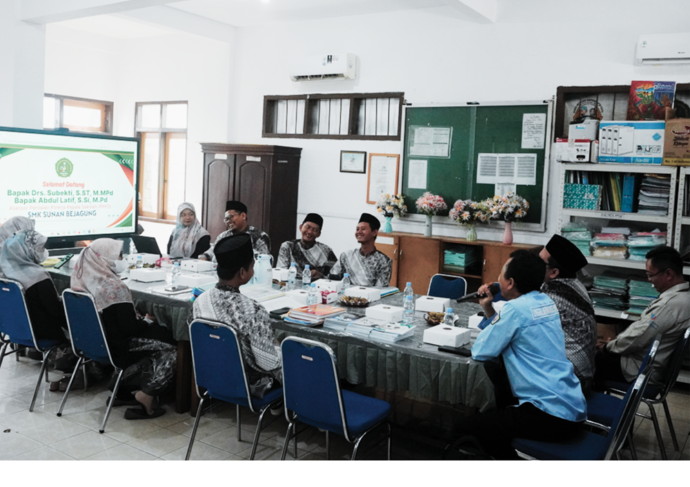 Sejak awal kegiatan, para asesor disambut dengan ramah oleh Kepala SMK Sunan Bejagung beserta jajaran manajemen. Seluruh guru, tenaga kependidikan, serta staf administrasi tampil kompak dan penuh semangat, mencerminkan budaya kerja profesional yang telah mengakar kuat di lingkungan sekolah.