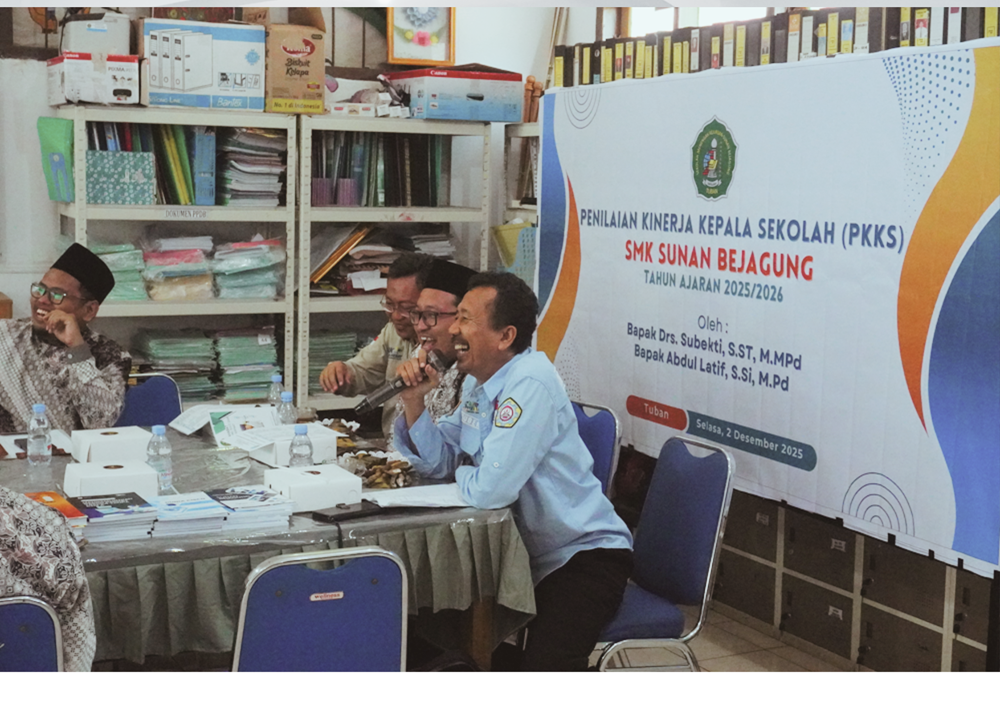 Pada Selasa, 2 Desember 2025, SMK Sunan Bejagung kembali melaksanakan Penilaian Kinerja Kepala Sekolah (PKKS) sebagai bagian dari agenda penting dalam menjaga dan meningkatkan mutu layanan pendidikan. Kegiatan berlangsung di ruang pertemuan utama sekolah dengan atmosfer yang tertib, hangat, dan penuh keceriaan dari seluruh tim yang terlibat.